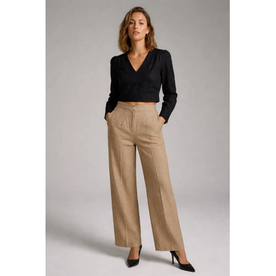بنطلون كتان واسع الساق حريمي b25