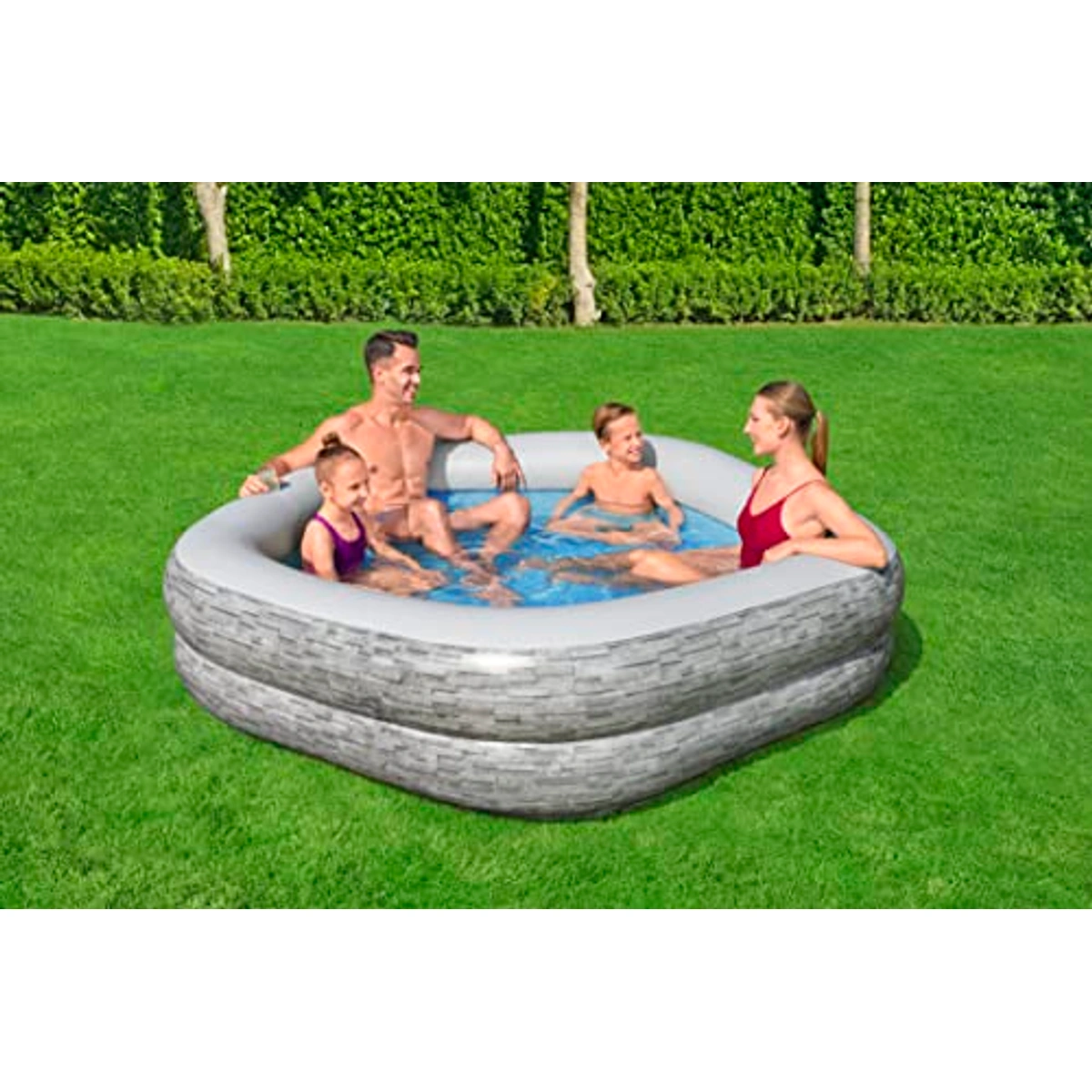 استمتع بصيف منعش وممتع مع حمام سباحة بيست واي العائلي بتصميم TruPrint Stone الأنيق. يتميز بمقعدين مريحين وحاملين أكواب، مثالي للاسترخاء واللعب لجميع أفراد الأسرة.