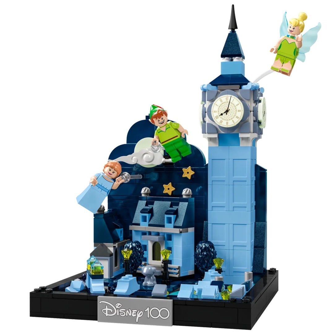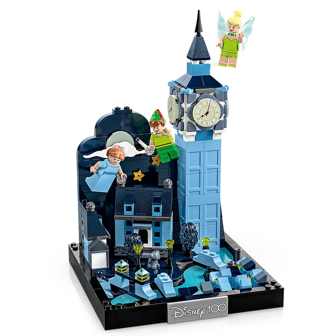 مغامرات عالية في السماء تنتظر عشاق ديزني الذين تزيد أعمارهم عن 10 سنوات مع طقم ليجو ديزني بيتر بان ورحلة ويندي فوق لندن (43232). يصور الديوراما التفصيلية مشهد الطيران الشهير من الفيلم الكلاسيكي الذي يضم ساعة بيغ بن في لندن مع 3 وجوه ساعة متوهجة في الظلام وسحابة بها نجوم وقمر متوهج في الظلام ونهر مع جسور وبيت لتربية الكلاب. يتضمن أيضًا 3 شخصيات ليجو ديزني المصغرة وشخصية كلب ليجو ولوحة الذكرى المئوية.