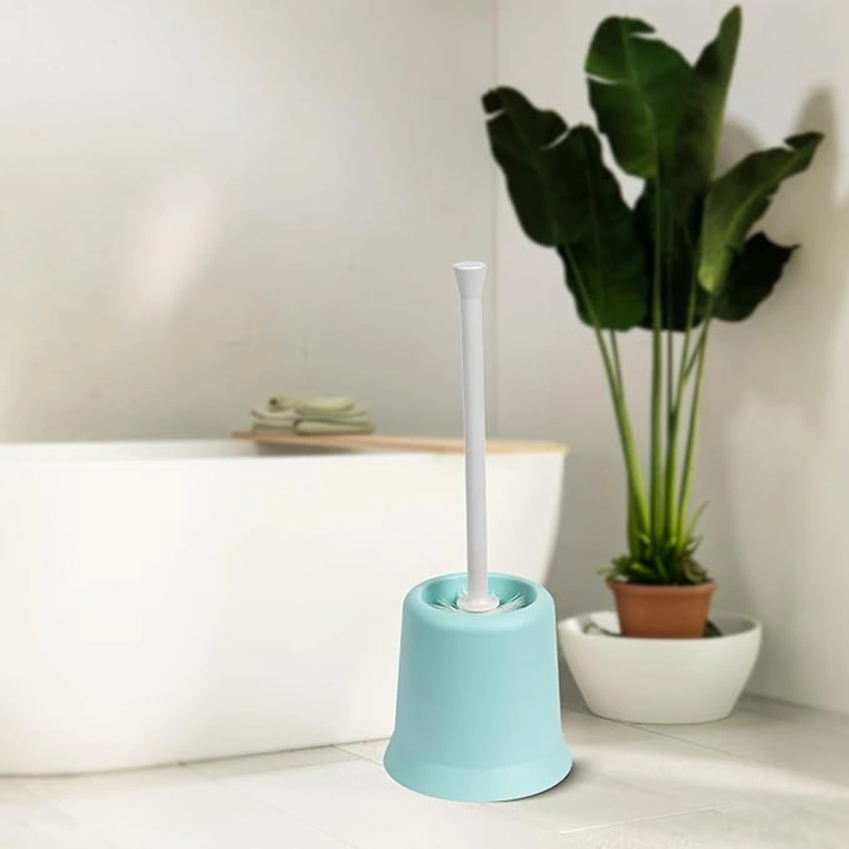 فرشاة تواليت بحامل عملية تساعد على تنظيف الحمام بشكل مرتب مع حامل مناسب. سهلة الاستخدام والتنظيف.
