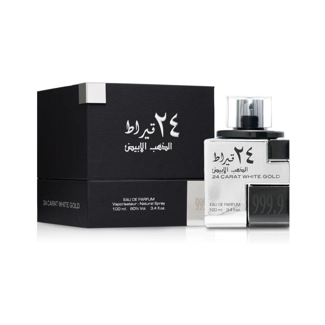 عطر لطافة برايد 24 قيراط ذهب أبيض هو تجربة عطرية فريدة تجمع بين الأناقة والتميز، حيث يتميز بمزيج غني من الروائح الشرقية المنعشة. يتكون من مكونات عليا مثل البرغموت والنيرولي، مع لمسات وسطى من الخزامى وجوزة الطيب، لتختتم بمكونات أساسية من الفيتيفر وحبوب التونكا وعود، مما يجعله مثالياً للمناسبات الخاصة والسهرات.