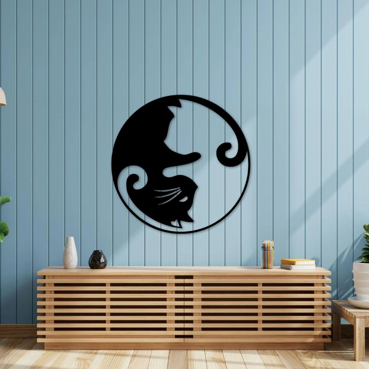 أضف لمسة فنية مميزة لمنزلك مع لوحة ATM الجدارية بتصميم قطط ين يانغ المصنوعة من خشب MDF عالي الجودة باللون الأسود المات، سهلة التركيب وتضفي توازناً وجمالاً على أي مساحة.