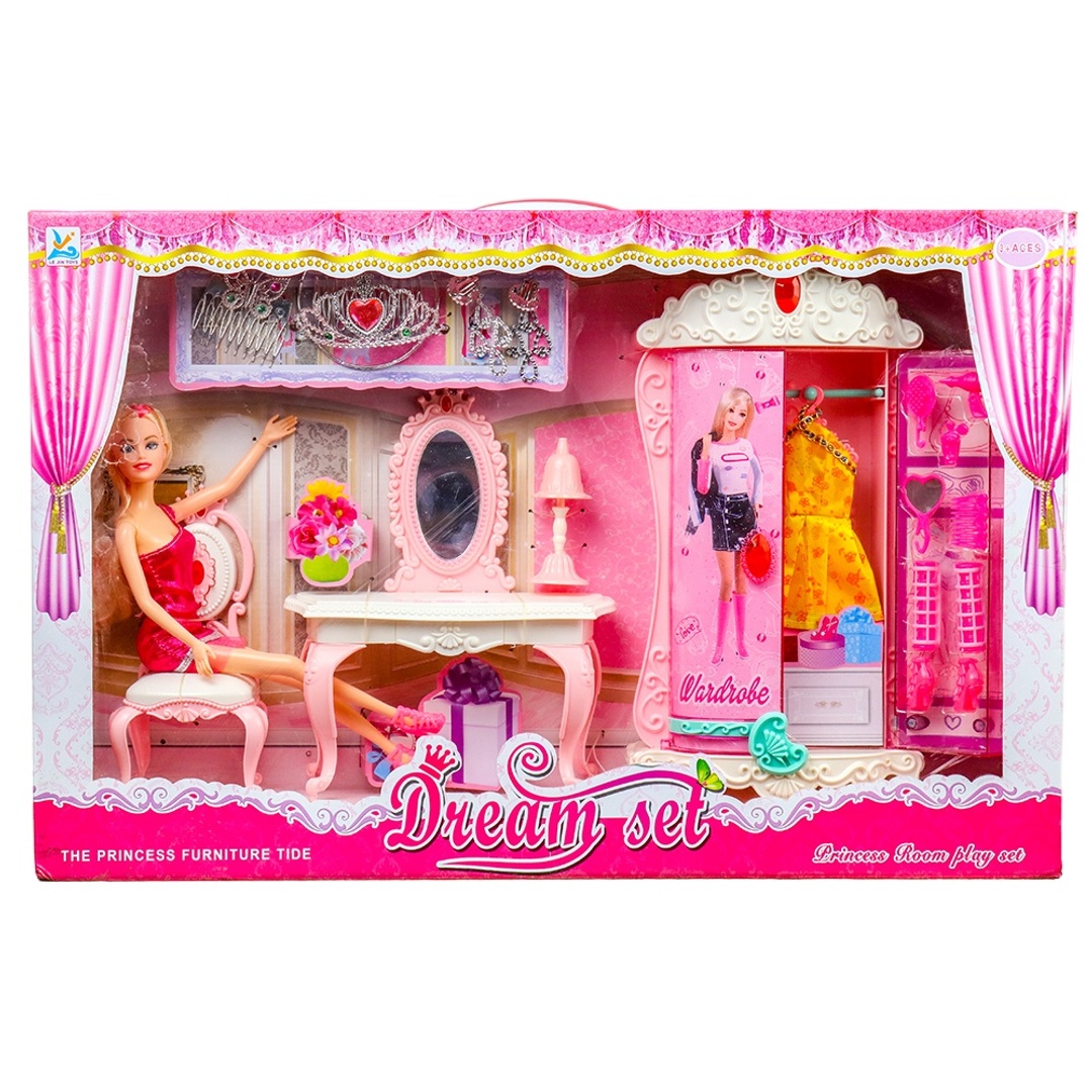 - الوصف: مجموعة دمية باربي العصرية مع طاولة الزينة وخزانة الملابس هي حلم كل عاشقة للموضة.