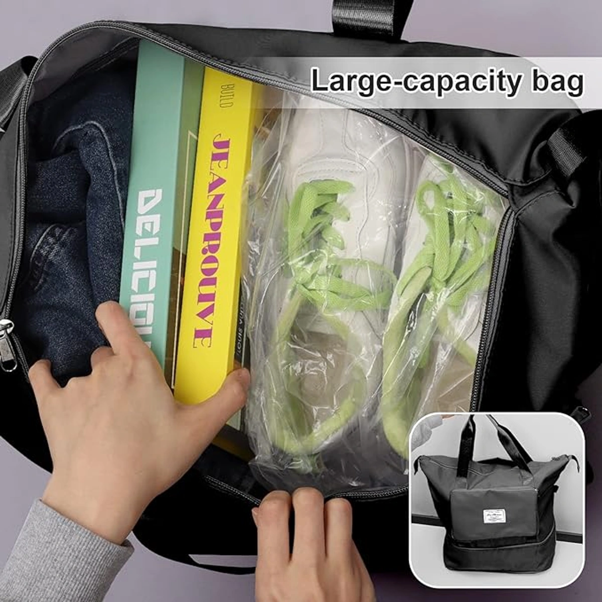 اكتشف شنطة اليد للسفر المثالية التي تجمع بين الأناقة والوظائف العملية، مصممة بلون أسود أنيق وقابلة للطي لتوفير المساحة، وتتميز بوزن خفيف سهل الحمل بفضل تصميم اليدين المريح. هذه الشنطة المقاومة للماء تأتي بسعة كبيرة لتخزين جميع أغراضك، مما يجعلها الخيار الأمثل للاستخدام اليومي والسفر. بأبعاد 29,97 x 4,06 x 18,03 سم ووزن 250 جرام، ستساعدك على تنظيم متطلباتك بكل سهولة وراحة.