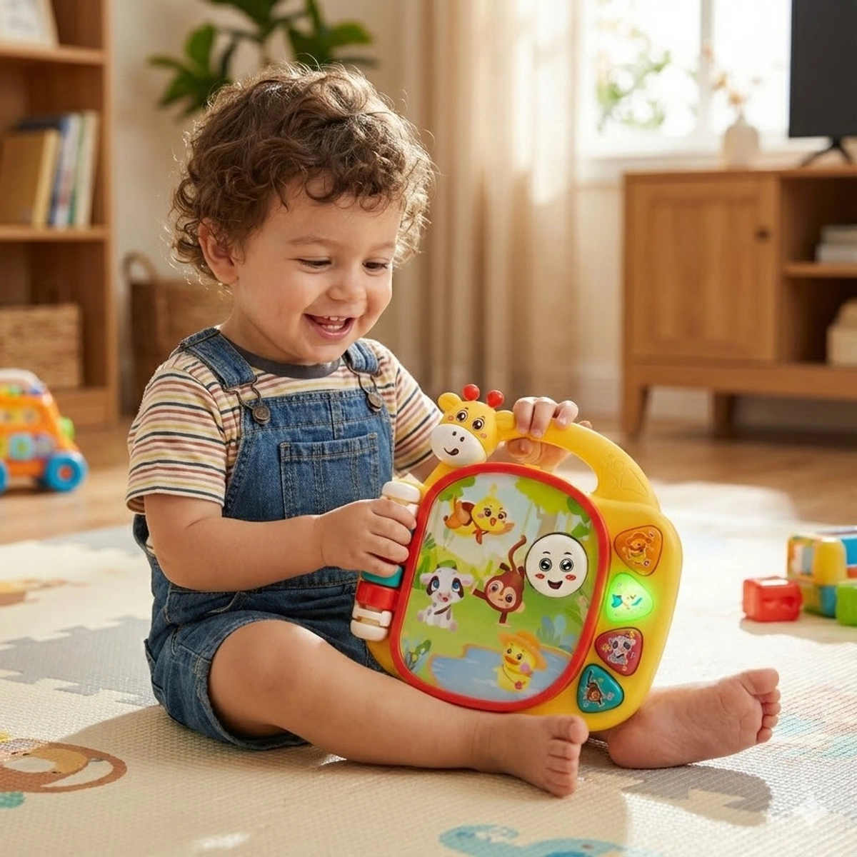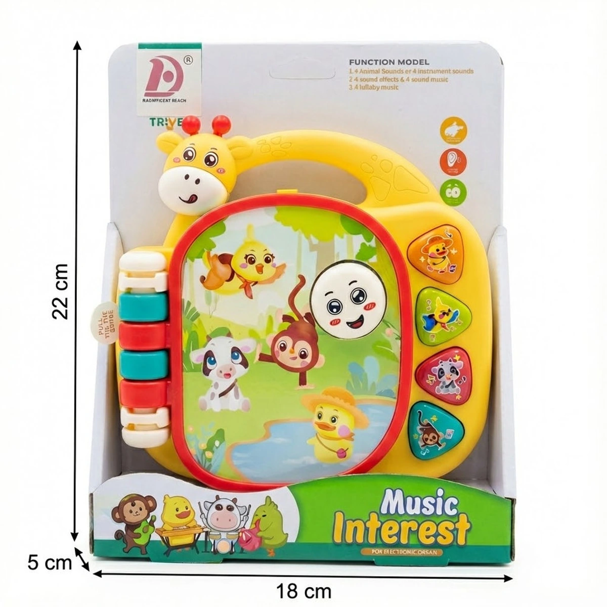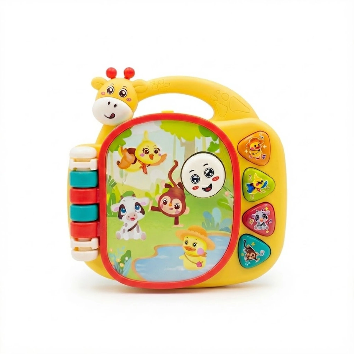 اكتشف عالم من المرح والتعلم مع كتاب الزرافة الموسيقي التعليمي - 855-162D، المصمم خصيصًا للأطفال من عمر 1 إلى 2 سنوات. هذا الكتاب الفريد يأتي بحجم 18 سم، مما يجعله مثاليًا لحمل الأطفال، ويحتوي على تصميم جذاب على شكل زرافة لطيفة تثير اهتمام الأولاد والبنات على حد سواء. يعمل الكتاب بواسطة 3 بطاريات AA 1.5V، ويقدم تجربة تعليمية ممتعة من خلال مجموعة متنوعة من الأصوات والإيقاعات التي تعزز الإدراك السمعي والمهارات الحركية الدقيقة. يوفر الكتاب أوضاع لعب متعددة تشمل أصوات الحيوانات، نغمات الآلات الموسيقية، ومؤثرات صوتية، مما يساعد الأطفال على الاسترخاء والتفاعل. بالإضافة إلى ذلك، يتميز بعناصر تفاعلية مثل الأزرار سهلة الضغط والتروس الدوارة، مما يعزز من تنمية التنسيق بين اليد والعين. اجعل من وقت اللعب تجربة تعليمية ممتعة مع هذا الكتاب المميز الذي يدفع الأطفال لاستكشاف عالم الفنون والموسيقى بطريقة مرحة وآمنة!