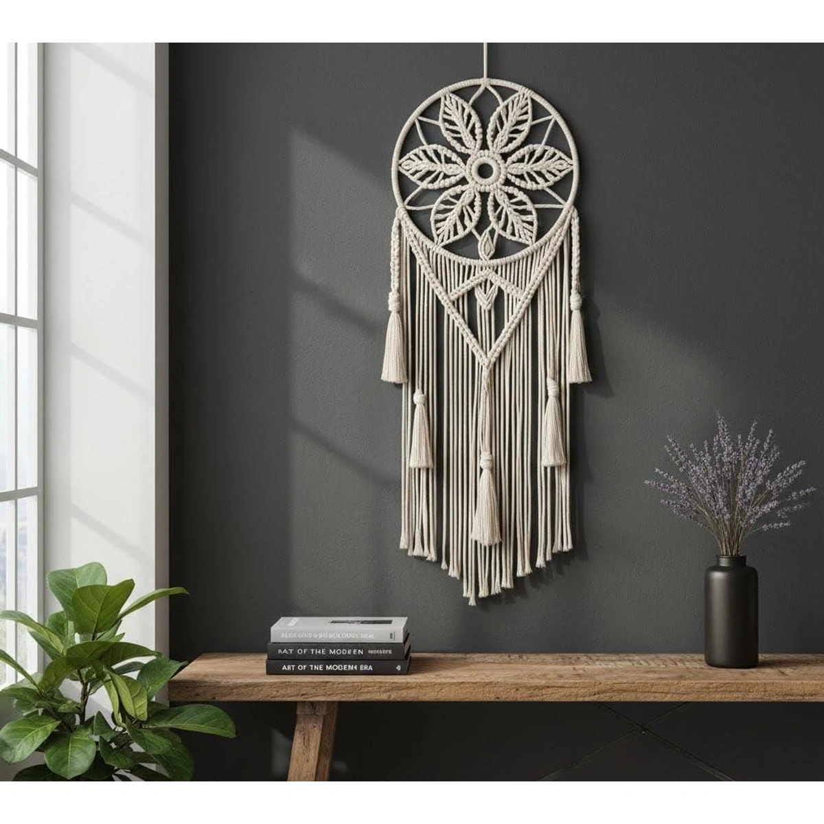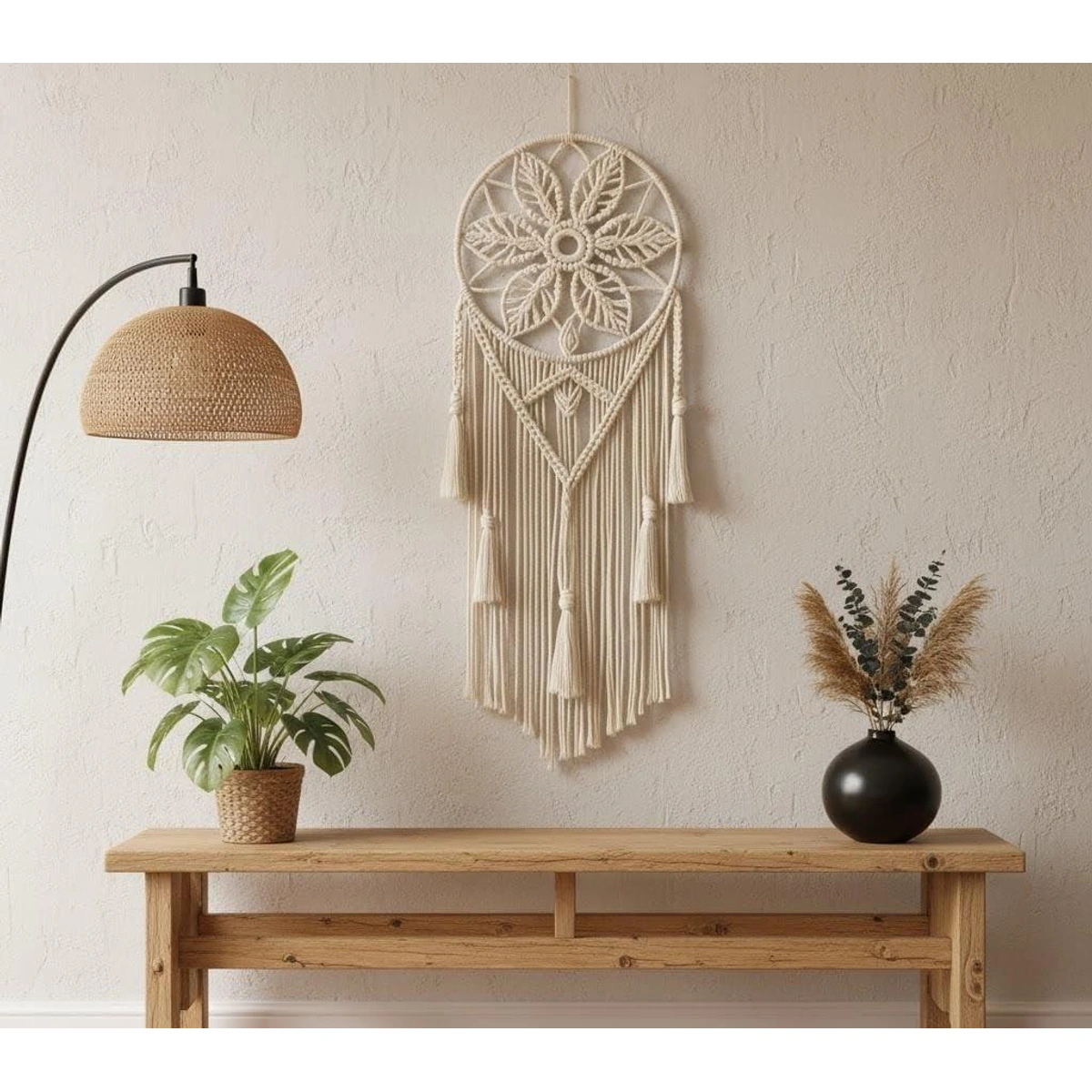 بتدور على قطعة ديكور مميزة تدي لبيتك لمسة فنية وروح بوهيمية؟ دريم كاتشر ATM الكبيرة دي هتكون الاختيار المثالي! تصميمها الفريد هيضيف سحر خاص على أي حيطة عندك، وهتحس بجمال الخامات الطبيعية اللي معموله منها.