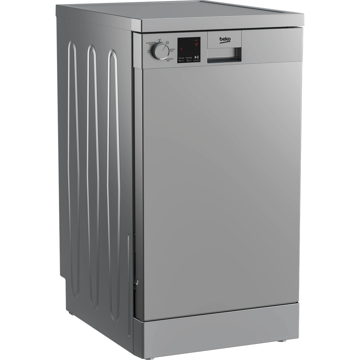غسالة أطباق بيكو 45 سم 10 أفراد، تتميز بتصميم فضي عصري وشاشة LED لسهولة التحكم. تحتوي على 5 برامج مختلفة لتلبية احتياجاتك في الغسيل. توفر لك وظيفة نصف حمولة لتوفير الطاقة عندما يكون لديك كمية أقل من الأطباق، بالإضافة إلى وظيفة تأخير الوقت التي تتيح لك تحديد وقت التشغيل المناسب. مع هذه الغسالة، ستحصل على نظافة عالية للأطباق مع استهلاك طاقة منخفض.