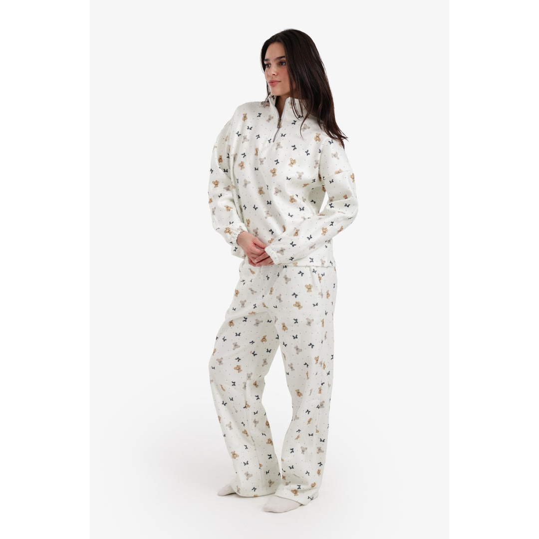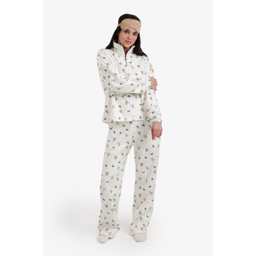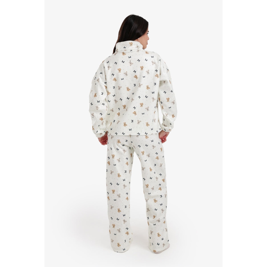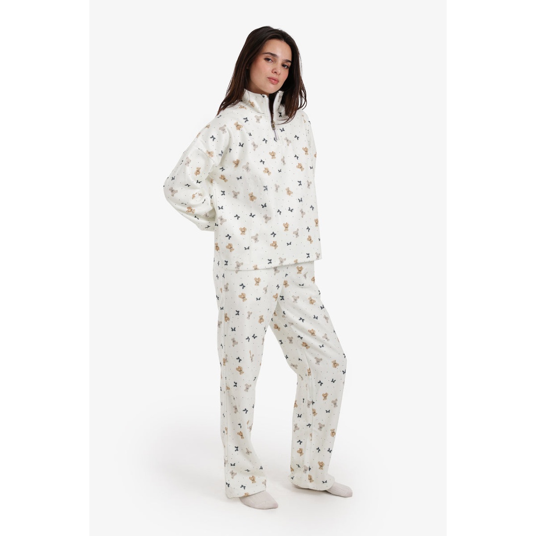 • بيجاما مطبوع بياقة واقفة - أبيض - 58035