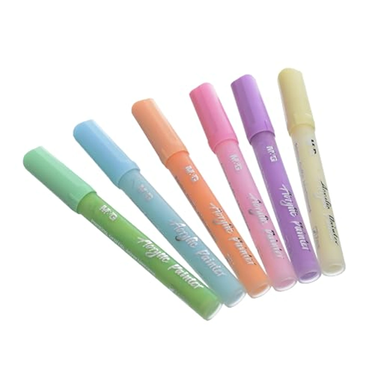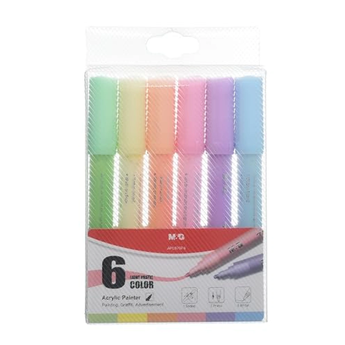 استمتع بإبداع لا حدود له مع طقم أقلام أكريليك M&G ذو الطرف الدقيق وتدفق الحبر السلس. 6 ألوان حيوية تضمن لك دقة وجمالًا في كل تفصيلة. مثالي للرسم والكتابة والتلوين.