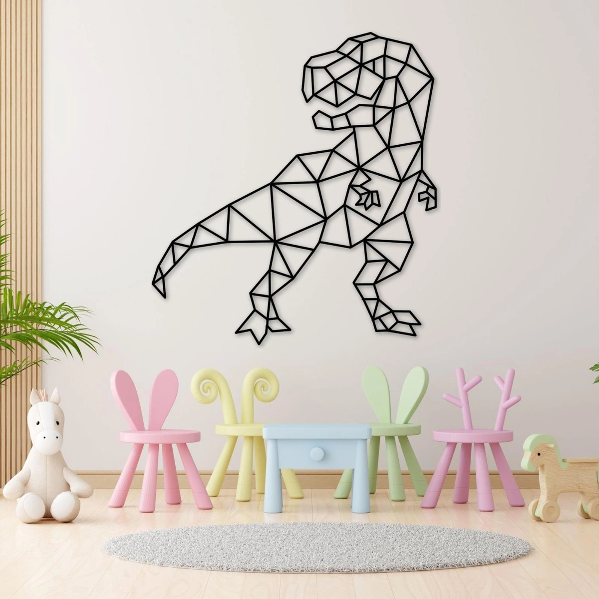 أضف لمسة مغامرة فريدة إلى منزلك أو غرفة أطفالك مع ديكور حائط ديناصور تي ريكس الخشبي من ATM. تصميم عصري وجذاب مصنوع من خشب MDF عالي الجودة، مثالي لتحفيز الخيال وإضافة لمسة جمالية مميزة.