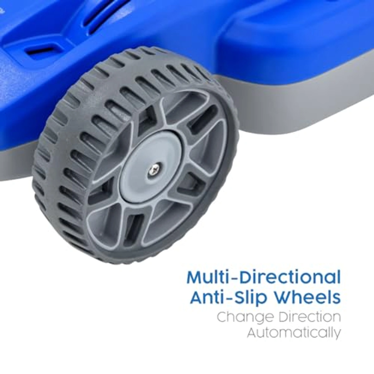 - عجلات متعددة الاتجاهات ومقاومة للانزلاق تتغير اتجاهها تلقائيًا لضمان تغطية كاملة.