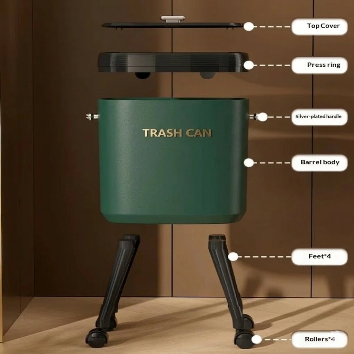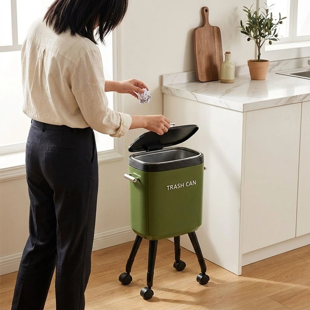 حافظ على نظافة وترتيب مساحتك مع باسكت Group Tiger العملي المزود بأرجل متحركة وغطاء سهل الفتح. تصميم أنيق باللون الأخضر وحجم 34 سم يجعله مثالياً لأي مكان في منزلك أو مكتبك.