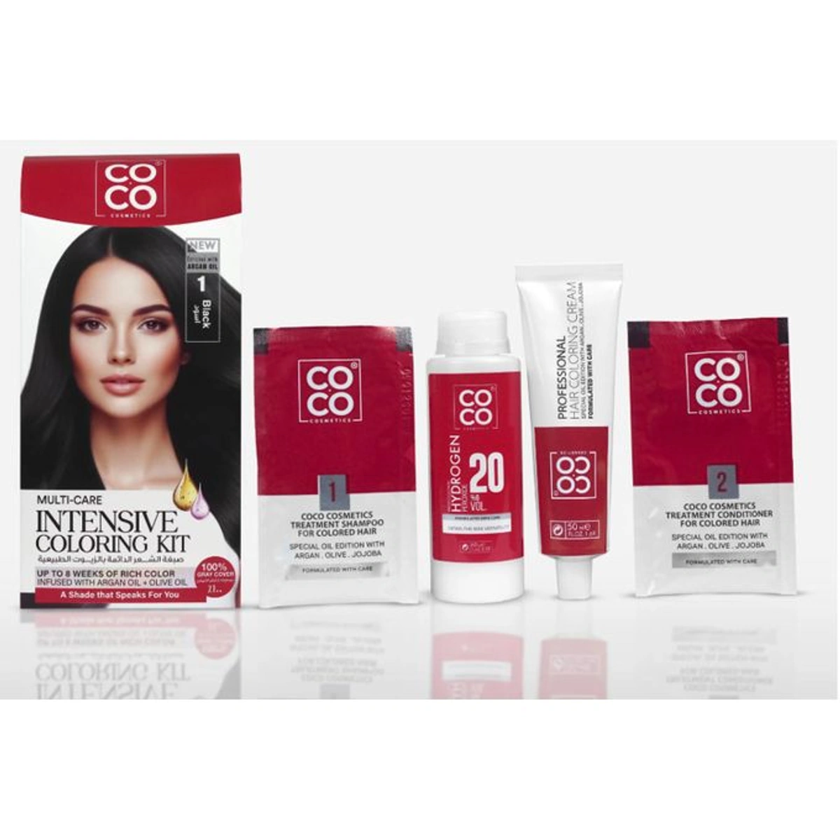 - الحجم: كريم التلوين 50 مل، المُظهِر 50 مل