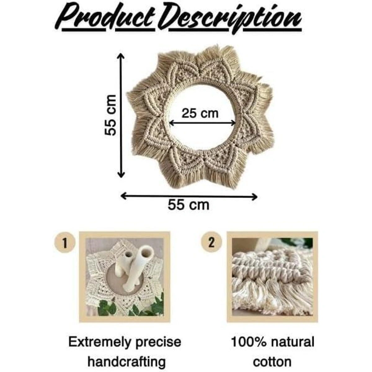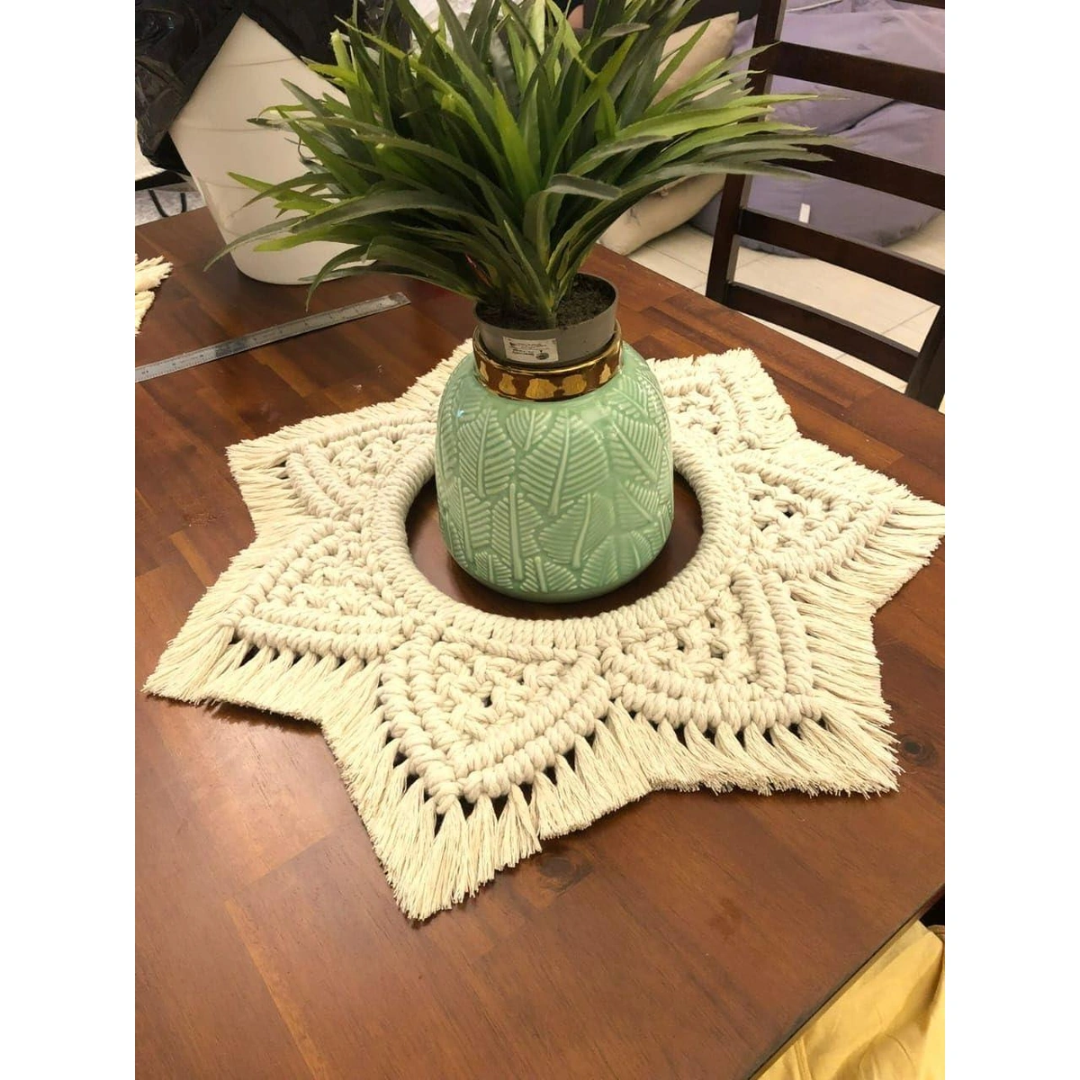 أضف لمسة جمالية راقية لطاولتك مع سجادة ATM المكرمية المصنوعة يدوياً من القطن الطبيعي بتصميم نجمة الزهرة المميز، مثالية لأي ديكور.