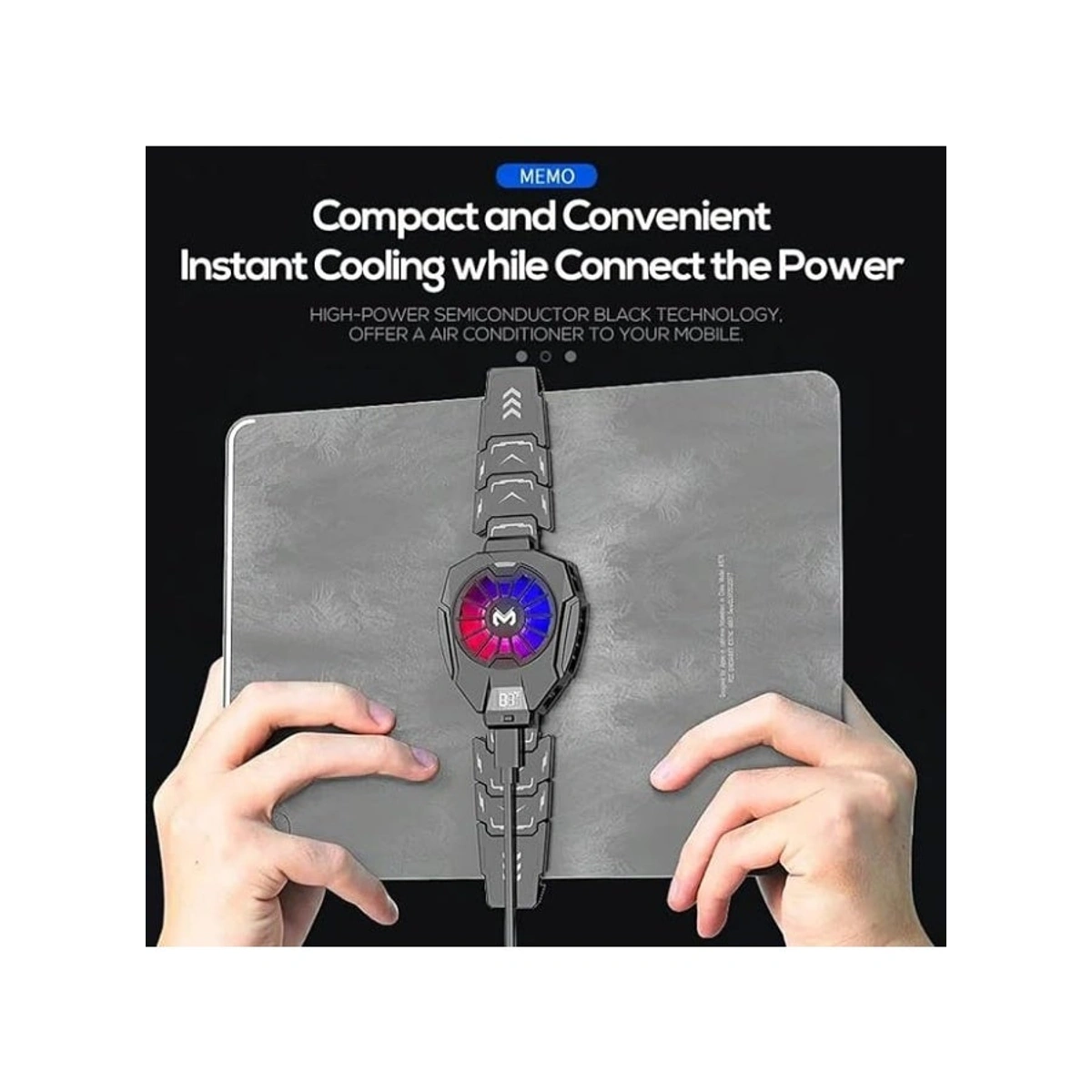 حافظ على جهازك باردًا أثناء اللعب مع مبرد Memo DL05 بتقنية أشباه الموصلات وشاشة عرض درجة الحرارة. استمتع بإضاءة RGB وتبريد فعال يمنع ارتفاع حرارة التابلت والموبايل.