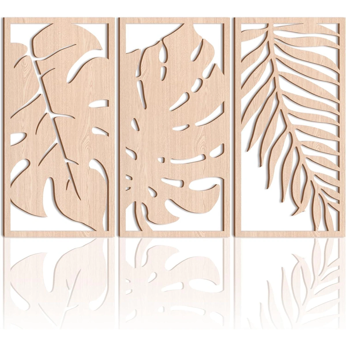 - التصميم: تصميم جذاب يخلق نقطة محورية مذهلة في أي غرفة. تصميم مقطوع بالليزر يبرز جمال الطبيعة الاستوائية، مع تكوين متوازن من أوراق المونستيرا ونخيل.