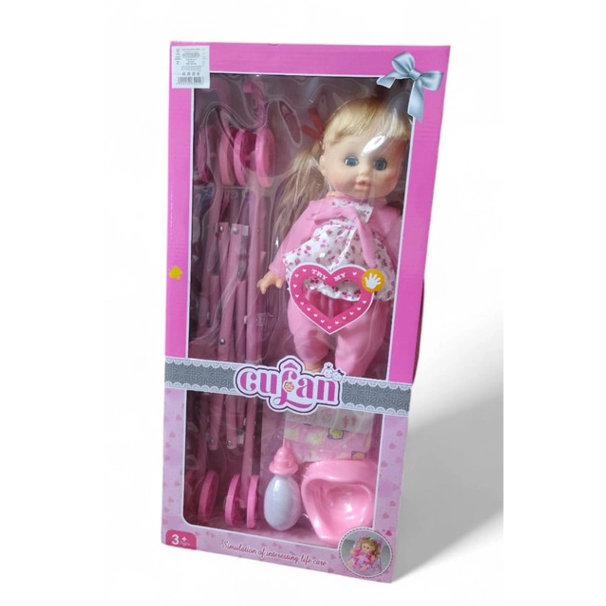 نوع المنتج: عروسة أطفال مع عربة أطفال ونونية وحفاضات